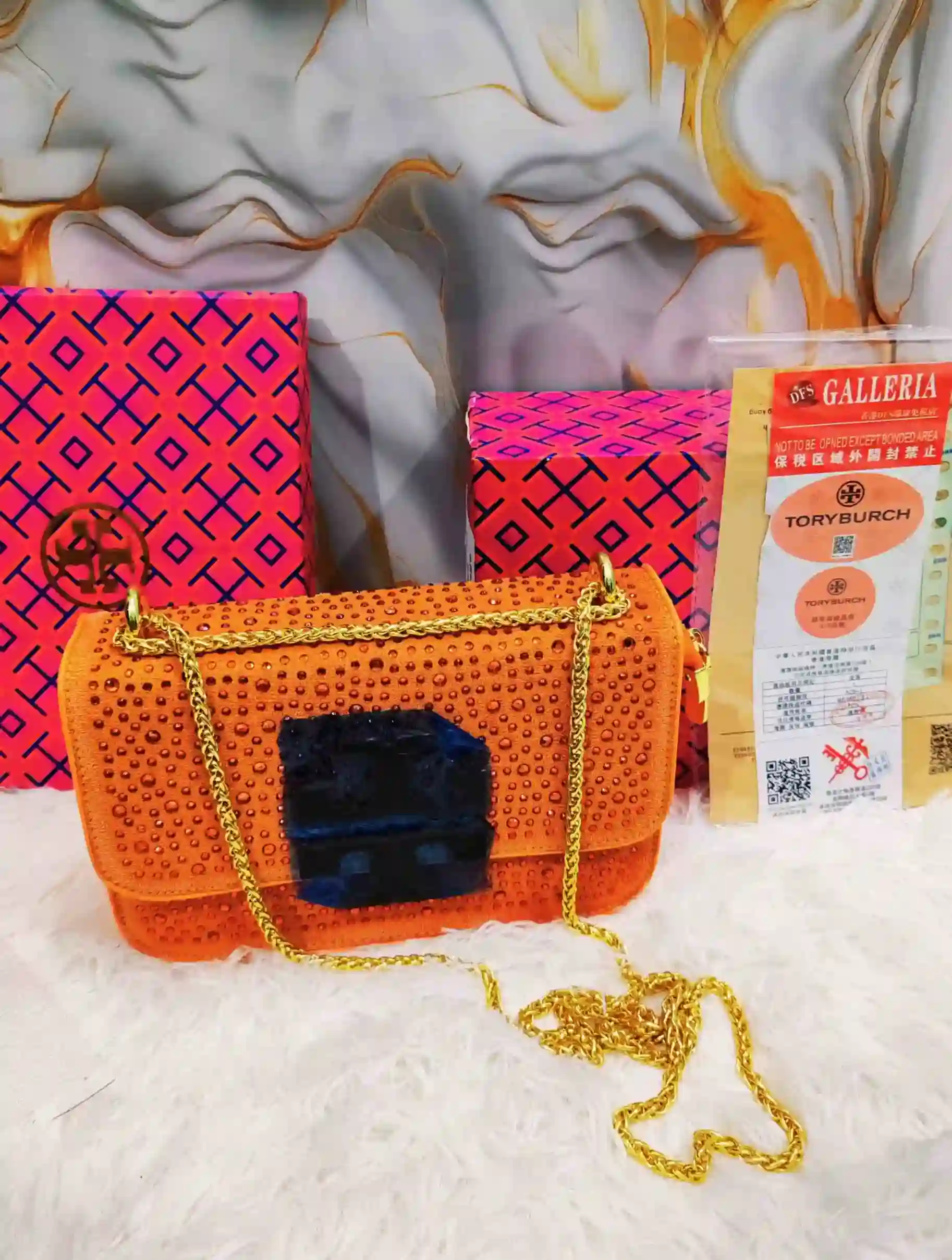 ✅ Tory Burch Inspired Orange Crystal Party Shoulder Bag for Women